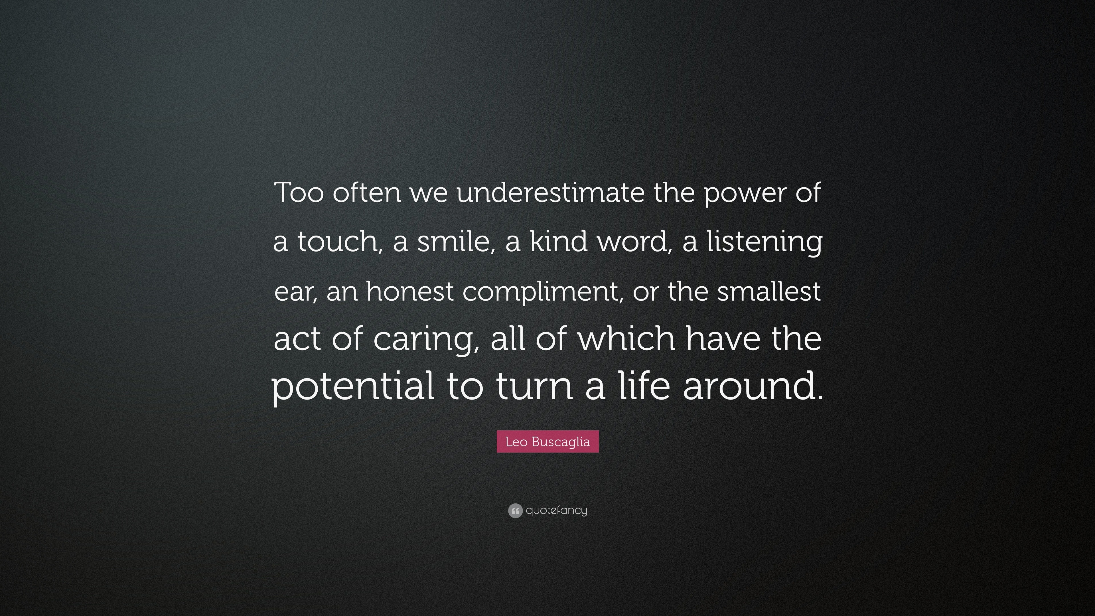 Too often we underestimate the power of a touch a smile a kind word a listening ear an honest compliment or the smallest act of caring all of which have. Leo Buscaglia s quote about Underestimate. Too often we underestimate the Too often we underestimate the power of a touch a smile a kind word a listening ear an honest.